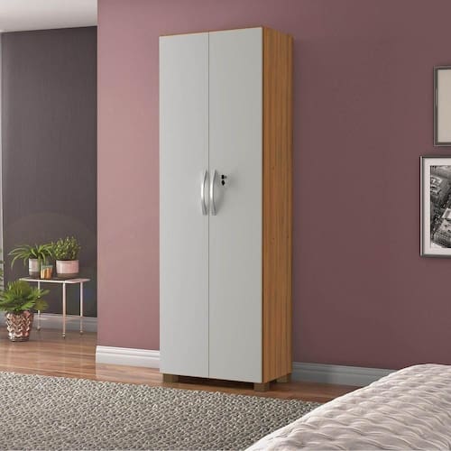 prateleiras bem distribuídas e espaçosas para organizar seus pertences, além de conter fechadura para armazenar tudo com segurança.