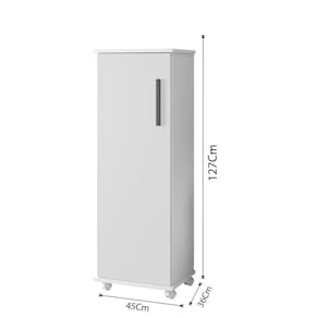 O Armário Multiuso com Rodízio Olinda se adapta a todos os espaços, organizando e decorando ambientes como quartos, copa, espaço gourmet e áreas de serviço. Uma porta, ótima divisão interna com quatro prateleiras, acabamento interno branco e rodízios.