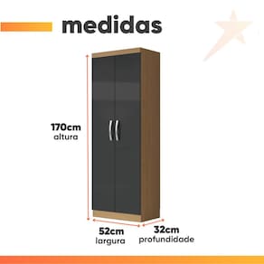 Armário Multiuso Organizador Lavanderia 2 Portas 3 Prateleiras 1,70m New Aramóveis - Grafite