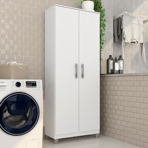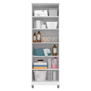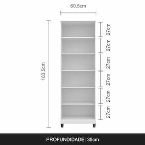 Detalhes Técnicos - Medidas: A: 183,5cm x L: 60,5cm x P: 35cm - MDP 12mm - Acabamento em UV Alto Brilho - Tonalidade: Branco - Puxadores e Pés em Polietilenos - Prateleiras suportam até 5kg distribuídos