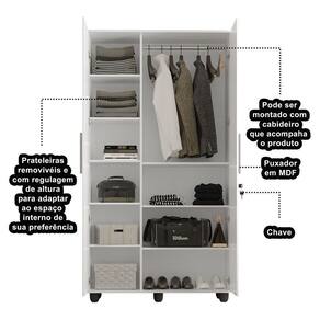 Com 10 prateleiras, cabideiro de alumínio, 02 portas com chave e puxadores em MDF, ele oferece amplo espaço interno para organizar roupas, calçados, acessórios, documentos e muito mais.