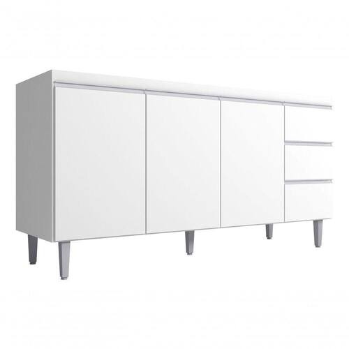 Esse Balcão é feito de material MDP de alta qualidade e fácil de limpar, ele possui puxadores em alumínio, que dão um toque de sofisticação, elegância e mais durabilidade ao móvel. O Balcão Gabinete Para Pia tem uma prateleira interna, três portas e três gavetas, ideais para guardar utensílios, panelas, talheres e outros objetos. Excelente pra você que tem pouco espaço e precisa de algo compacto, porém com qualidade, o móvel que você precisa para deixar sua Cozinha mais bonita e organizada.