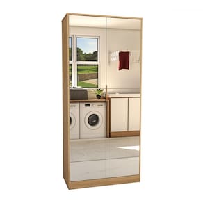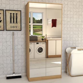 O(a) Armário Multiuso Plaza 2 Portas com Espelho 1 Gaveta Amêndola Touch - Loja é produzido em MDP na escala de brilho Brilho e Fosca com Textura, e possui um grau de dificuldade de montagem: Médio.