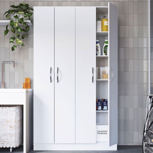 O(a) Armário Multiuso Riviera 4 Portas 8 Prateleiras Branco - Irm Móveis  é produzido em MDP na escala de brilho Fosco, e possui um grau de dificuldade de montagem: Médio.