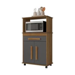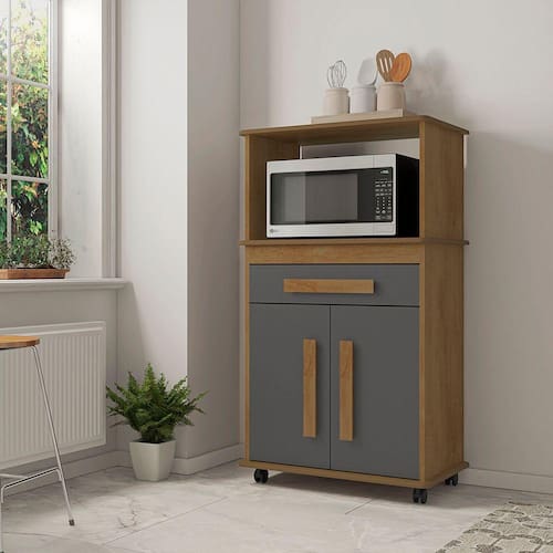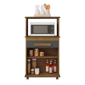 Cor: Cinamomo e grafite Linha: Cozinha Modelo: Toronto Tipo: Multiuso Material: MDP e MDF Acabamento: Pintura UV Quantidade de pés: 4 (rodízios) Quantidade portas: 2 Quantidade de gavetas: 1 Quantidade de nichos: 1 Quantidade de prateleiras: 1 Tipo de dobradiças: Metálicas Tipo de corrediças: Telescópicas Necessita montagem: Sim Complexidade da montagem: Fácil Sistema de montagem: Buchas e parafusos Quantidade de volumes: 1