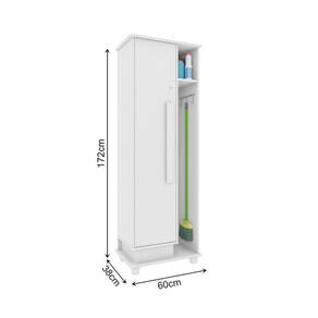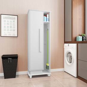 Características Técnicas: Tipo: Armário Multiuso Modelo: Caribe Cor: Branco Estrutura: MDP Acabamento: Pintura UV fosco Material da Porta: MDP Material do Fundo: Chapa 3 mm Material da Prateleira: MDP Material dos Pés: Plástico Material do Puxador: MDF Tipo de dobradiça: Metálica Resistência à chuva: Não
