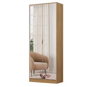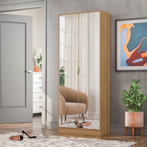 Móvel que embeleza e amplia o ambiente devido à grande área de espelhos nas portas; prateleiras ideais para acomodação de vários pares de sapatos além de uma gaveta interna para pequenos pertences com deslize em corrediça telescópica. Puxadores discretos em alumínio.