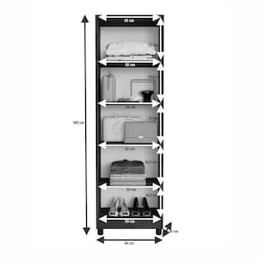 Composto por 2 portas e 5 prateleiras internas, oferece amplo espaço para guardar roupas, acessórios, documentos ou o que mais você precisar manter em ordem. Seus 4 pés em PVC garantem estabilidade e proteção ao piso, enquanto a fechadura com chave oferece a e a privacidade que você procura.Perfeito para quartos, escritórios, corredores ou até lavanderias, o Multiuso Versátil combina com tudo e mantém sua casa ainda mais bonita e organizada.