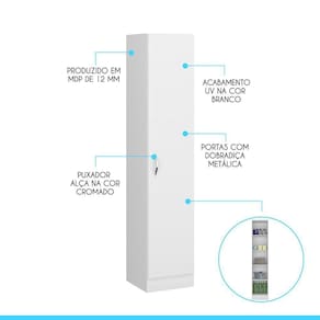 O Armario Multiuso foi desenvolvido pensando em atender todas as suas necessidades do dia a dia com um design atual, unindo versatilidade, conforto e beleza. Pode ser utilizado como sapateiro no quarto, armario multiuso na area de servico, armario extra na cozinha, guarda objetos da garagem ou onde voce precisar. Possui uma porta e prateleiras internas perfeitas para manter tudo organizado. Produzido com materiais de excelente qualidade, garantindo a sua durabilidade. O melhor em moveis no design atual aliando conforto, qualidade e otimos precos, so na Menu Moveis!