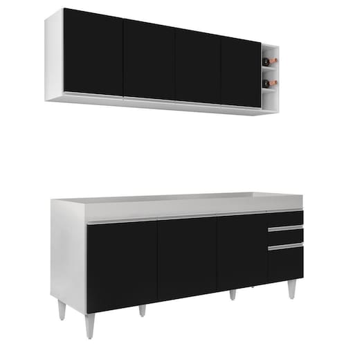 SupplierSimpleName: Armário Nevada e Balcão para Pia 180cm Dallas BrancoPreto - Lumil | Model: NevadaDallas | ProductHeight: 83 | Material: MDP | Origem: Nacional | Cor: BrancoPreto