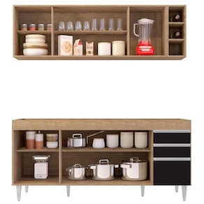 Em um cômodo que exige funcionalidade e beleza o Conjunto Armário Aéreo Nevada e Balcão para Pia 180cm Dallas Castanho/Preto da Lumil é a escolha perfeita para a sua Cozinha! Vem conhecer os detalhes!