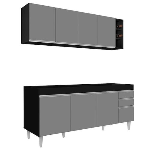 Em um cômodo que exige funcionalidade e beleza o Conjunto Armário Aéreo Nevada e Balcão para Pia 180cm Dallas Preto/Cinza da Lumil é a escolha perfeita para a sua Cozinha! Vem conhecer os detalhes!