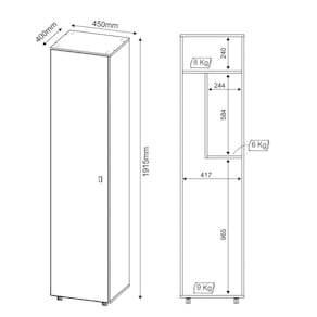 Garantia: 90 dias / Peso: 30,65kgs / Cor predominante: branco / Referência: 7898951189003; Dimensões: 40cm (C) x 45cm (L) x 191,5cm (A); Material: MDP e pintura UV; Conteúdo da embalagem: móvel, ferragens e manual de montagem.