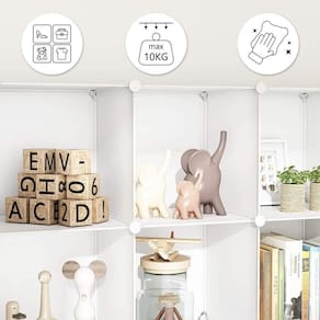Características: Economia de Espaço: Ideal para salas de estar, quartos ou qualquer espaço compacto, este organizador otimiza o espaço disponível, mantendo todos os itens em uma única prateleira para uma área sempre arrumada. Versatilidade: Com um design modular, o armário oferece armazenamento ível para uma variedade de itens, como brinquedos, cobertores, roupas, sapatos e acessórios. Mantém tudo limpo, organizado e facilmente acessível. Fácil Montagem: Cada cubo possui dimensões de 35 x 35 x 35 cm, e o armário totaliza 130 x 75 x 47 cm. A montagem é simples e ajustável, permitindo que você configure o organizador conforme suas necessidades e preferências. Durabilidade: Fabricado com folhas de plástico de polipropileno de alta qualidade e hastes de aço, o armário é resistente e durável, oferecendo uma solução para organizar roupas, lingerie, meias, acessórios e gravatas. Espaço Interno: Com várias portas que abrem facilmente, o armário proporciona um espaço generoso para pendurar casacos e guardar roupas dobradas. A parte inferior é ideal para pequenos itens adicionais, maximizando a organização.