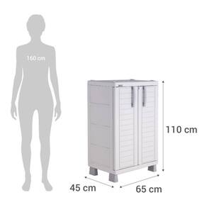 Armario Plastico Cinza da Renomada Marca Rimax. Um dos problemas que temos que enfrentar dia apos dia em casa e a falta de espaco de armazenamento. Seja na cozinha, no quarto ou nos quartos, as coisas parecem multiplicar-se e ha momentos em que nao sabemos onde as guardar nem o que fazer com elas. Aqui apresentamos uma solucao pratica e eficaz: armarios exteriores. Especial para guardar ferramentas e acessorios de exterior, como vasos. Isso e ideal para adega. Fabricada em polipropileno, mede 65 cm de comprimento x 45 cm de altura x 101 cm de largura e se destaca por suas 2 prateleiras. Tem garantia de 3 meses.