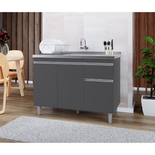 Armário P/ Pia Inox 120cm Cinza 3 Portas 1 Gaveta S/ Tampo - Pop