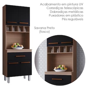 Armario Paneleiro 4p 1g 197x60 Cm Vitoria Savana Preto Mobbs Savana Preto