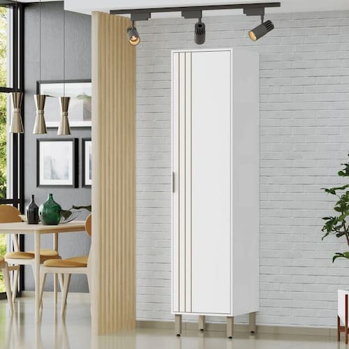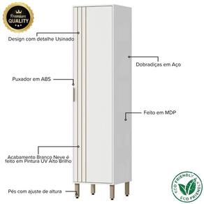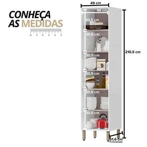 Características Gerais do Produto: - Acabamento: Pintura UV Alto brilho / Fosco - Acompanha Manual: Sim - Altura (cm): 210,5cm - Largura (cm): 49cm - Profundidade (cm): 51,6cm - Quantidade De Prateleiras: 6 - Peso (Kg): 44,42kg - Matéria-prima: MDP 15mm Dobradiças em aço Puxadores em ABS - Garantia: 3 Meses - Quantidade de Portas: 1 - Requer montagem: Sim