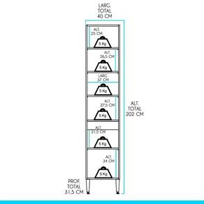 Dimensoes: Altura: 202 cm Largura: 40 cm Profundidade: 31,5 cm Peso: 26,7 kg