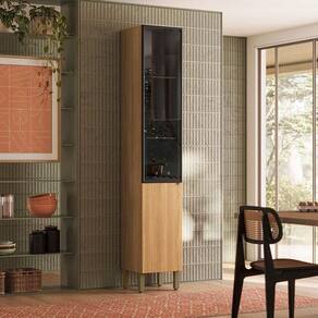 Armário Paneleiro Simples Cristaleira Art 6008 Freijó ABS Preto - Kits Paraná