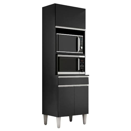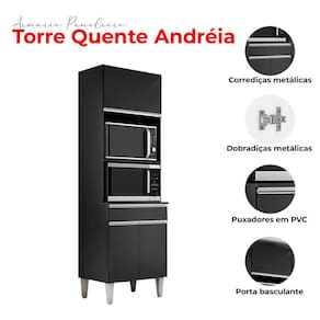 Armário Paneleiro Torre Quente 2 Fornos Andréia Preto Fosco - AJL