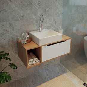 Características: Estrutura MDP Acabamento em pintura UV 1 Porta 1 Prateleira Suporta 10kg o tampo Suporta 3kg os nichos Tampo e nicho lateral Não acompanha cuba