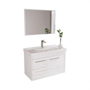 Conjunto gabinete potenza riverzza + espelheira O gabinete suspenso para banheiro é desenvolvido com estrutura em mdf e a cuba em bmc, garantindo mais durabilidade e resistência ao produto. Medida do gabinete: l x a x c 31,5cm x 41cm x 63cm Peso gabinete: 15,7 kg Peso suportado: 14 kg Medida da cuba: l x a x c 31,5cm x 2,5cm x 63cm Medida espelheira: l x a x c 38cm x 54cm x 1,2cm Furo da torneira: 2,7cm Furo do ralo/válvula: 3,2cm Medida da embalagem produto desmontado : l x a x c 40,5cm x 23,5cm x 70,7cm Peso da embalagem: 15,7 kg Itens inclusos: 1 gabinete de banheiro, 1 pia, 1 espelheira e 1 kit de montagem. Acompanha cuba: sim cor: branca Material da cuba: bmc Estilo: moderno Furação para cuba e torneira: sim Material da porta: mdf Material do puxador da porta: plástico Material principal: mdf Material da prateleira: mdf Possui espelho: sim Possui gabinete: sim Possui gaveta: 02 Possui iluminação: não Possui pés: não Possui portas: 01 Possui prateleiras: não Possui rodízio: não Kit montagem: sim apenas para montagem, não acompanha parafusos para fixação Necessita montagem: sim Complexidade da montagem: baixa pode ser montado por uma pessoa sozinha Origem do produto: nacional do fornecedor: 03 meses Recomendações de uso, manutenção e limpeza: limpar com pano levemente umedecido Tipo de dobradiça/corrediça da porta: metálica Tipo de porta: bater Tipo de puxador da porta: externo Marca: Não Informado