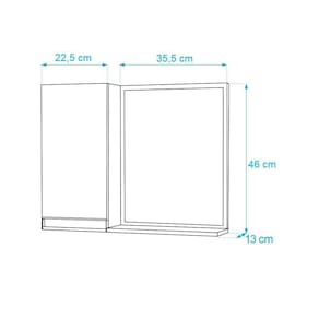 Suas medidas totais são: 58cm de Largura x 46cm de Altura x 13cm de Profundidade. O espelho mede: 33cm de Largura x 42,5cm. Peso: 7,5kg.