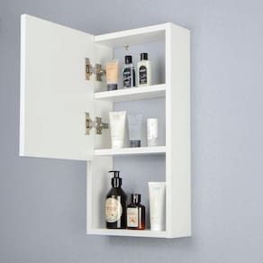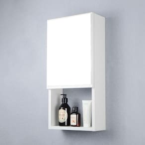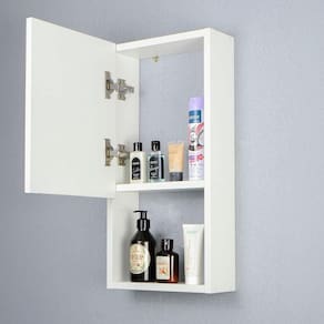 Possui 2 prateleiras internas e 1 nicho externo, permitindo que você armazene e organize seus itens de higiene pessoal, maquiagem e acessórios, mantendo tudo ao alcance das mãos. A prateleira interna também é removível, o que possibilita usar objetos maiores caso necessário.