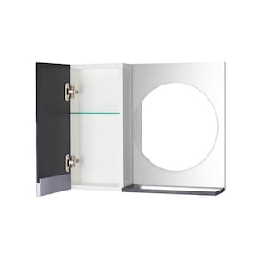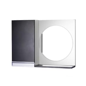 Armário para Banheiro com Espelho Redondo Preto e Branco com Puxador de Metal. Já vem montado, pronto para colocar na parede. É só abrir a caixa e instalar em seu banheiro. Acompanha 2 parafusos com buchas para instalar na parede.