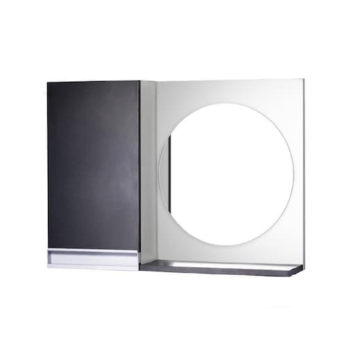 Armário para Banheiro com Espelho Redondo Preto e Branco Com Puxador De Metal