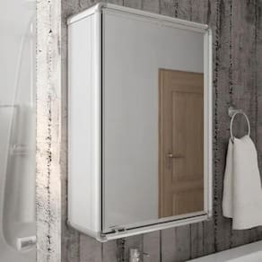 Armário Para Banheiro Com Perfil Alumínio 44X58 Cm Lbp13S Astra Armário para banheiro de sobrepor com perfil de alumínio e branco; Fácil troca do espelho; Dimensões: 44 cm x 58 cm x 11,3 cm; Modelo: LBP13/S. Marca: Astra Fabricante: Astra Aviso: Montagens, desmontagens e instalações são responsabilidades do cliente. Estes serviços não estão inclusos no valor do produto. Para evitar imprevistos na sua entrega, confira as dimensões do produto no momento da compra e certifique-se de que ele passará por elevadores, portas, escadas e corredores. Imagens meramente ilustrativas. : 6 meses