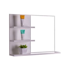 A espelheira possui 3 prateleiras externa para guardar e organizar itens de higiene pessoal e acessórios do seu banheiro, seu espelho é amplo, tornando-o um produto versátil.