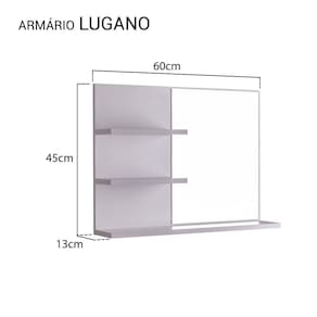 Suas medidas totais são: 60cm de Largura x 45cm de Altura x 13cm de Profundidade.