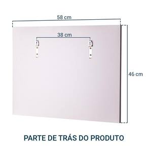 Suas medidas totais são: 60cm de Largura x 45cm de Altura x 13cm de Profundidade.