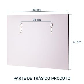 Suas medidas totais são: 60cm de Largura x 45cm de Altura x 13cm de Profundidade.