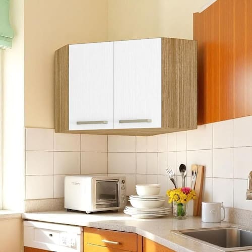 O Armário Suspenso de canto destaca-se por sua praticidade e eficiência de uso, podendo ser utilizada como complemento de cozinha.