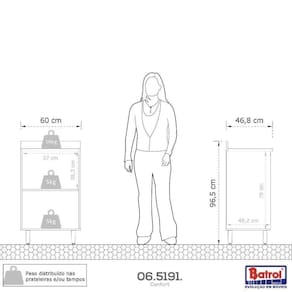 As Cozinhas moduladas da Batrol Móveis, possuem excelente design e são desenvolvidas com matérias-primas de alta qualidade. Utilizamos o MDP, material ecologicamente correto, que confere boa resistência e durabilidade à peça. O modular deixa o produto com um aspecto de cozinha planejada - a cozinha dos sonhos - pois seus módulos são separados, podendo ser montado como você preferir, se encaixando em qualquer ambiente. Acabamento da Prateleira: Pintura Escala de Brilho da Prateleira: Fosco Acompanha Tampo: Sim Altura dos Pés: 14,5 cm Altura Máxima dos Pés: 14.5000 Ambiente Principal: Cozinha codigo_ean: 7909903593486 Complexidade da Montagem: Média: pode ser montado por mais de uma pessoa e/ou necessite de maior conhecimento para montagem Cor: Cinamomo/ Off-White Cor do Produto: Cinamomo/ Off-White Cor Interna: Cinamomo Escala de Brilho: Fosco Espessura do Tampo: 25 mm Itens Inclusos: 1 Balcão, Kit Ferragens e Manual de Montagem Linha ou Coleção: Confort Manual de Montagem e Instalação: https://product-hub-prd.madeiramadeira.com.br/894280/documents/79ca35e0-c078-4f89-acaa-4ba19c90479363208f11938545191revisAo00.pdf Material da Prateleira: MDP Material do Tampo: MDP Material dos Pés: Plástico modular: Não Necessita Montagem: Sim O Balcão Acompanha Pia: Não Origem do Produto: Nacional Pés Reguláveis: Sim Peso: 24,7 kg Peso Máximo por Prateleira: 5 kg Possui Pés: 04 Possui Portas: Não Possui Prateleiras: Sim Possui recorte para Cooktop: Não Possui Rodízio: Não Possui Vidro: Não Produto Montado: Sim Recomendações de Uso, Manutenção e Limpeza: Pano úmido Sapatas Niveladoras: Não Sistema de Montagem: Parafuso Suporta Até (kg): 20 kg Tamanho Indicado da Pia: Não