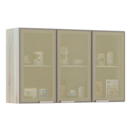 Armário Para Cozinha 120 Cm 3 Portas Com Vidro Reflecta Bronze Luci Luciane Móveis Legno Crema