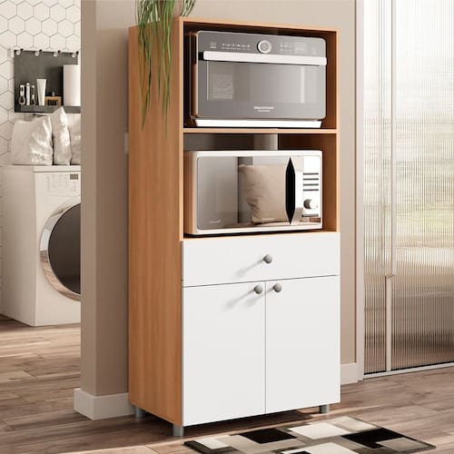 Precisa ampliar o espaço de organização e armazenamento em sua cozinha? O Balcão Multiuso Âmbar é a escolha perfeita! Com ótimos componentes e acabamento de qualidade, este balcão oferece diversos compartimentos para acomodar seus itens, incluindo espaços dedicados para forno e micro-ondas, mantendo-os ao seu alcance. Com duas portas, uma prateleira interna e uma ampla gaveta, este móvel é indispensável para a organização da sua cozinha. Acabamento da Prateleira: Finish Foil Escala de Brilho da Prateleira: Semi-Brilho Acabamento da Gaveta: Finish Foil Escala de Brilho da Gaveta: Semi-Brilho Material do Puxador da Gaveta: Poliestireno Acabamento da Porta: Finish Foil Escala de Brilho da Porta: Semi-Brilho Material do Puxador da Porta: Poliestireno Acabamento dos Pés: Polipropileno Acompanha Rodapé Decorativo: Não Acompanha Tampo: Não Altura dos Pés: 5 cm Altura Máxima dos Pés: 5.0000 Ambiente Principal: Cozinha Balcão Suporta Pia: Não codigo_ean: 7900288167668 Complexidade da Montagem: Média: pode ser montado por mais de uma pessoa e/ou necessite de maior conhecimento para montagem Cor: Branco / Freijó Cor do Produto: Branco / Freijó Cor Flex: Não Cor Interna: Freijó Escala de Brilho: Semi-Brilho Espessura do Material da Estrutura: 15 mm Gaveta com Chave: Não Itens Inclusos: 1 Armário e Manual de Montagem Linha ou Coleção: Âmbar Manual de Montagem e Instalação: https://product-hub-prd.madeiramadeira.com.br/111249609/documents/403d3bf9-c4a5-467a-844d-eb98e1ae32da2984502129317492384799716.pdf Marca: Telasul Material da Corrediça: Alumínio Material da Dobradiça/Corrediça da Porta: Metálica Material da Gaveta: Polipropileno Material da Porta: MDP Material da Prateleira: MDP Material dos Pés: Polipropileno modular: Não Montagem Flex: Não Necessita Montagem: Sim O Balcão Acompanha Pia: Não Origem do Produto: Nacional Pés Reguláveis: Não Peso: 33,4 kg Peso Máximo por Gaveta: 3 kg Peso Máximo por Prateleira: 15 kg Possui Espelho: Não Possui Possui Pés: 04 Possui Portas: Sim Possui Prateleiras: Sim Possui Rodízio: Não Possui Vidro: Não Produto Montado: Sim Recomendações de Uso, Manutenção e Limpeza: Na limpeza, utilizar pano macio levemente umedecido em água e sabão neutro. Após, secar para evitar mofo no produto. Nunca utilizar álcool ou produtos abrasivos e, principalmente, esponjas de aço ou qualquer material que arranhe a superfície. Evitar o armazenamento de substância ácidas (sal, vinagre, limão, cebola, etc) em contato direto com o móvel. Sapatas Niveladoras: Não Sistema de Montagem: Parafusos e cavilhas Suporta Até (kg): 70 kg Tamanho Indicado da Pia: Não se aplica Tamanho Indicado do Tampo: Não se aplica Tipo de Corrediça da Gaveta: Simples Tipo de Dobradiça/Corrediça da Porta: Simples Tipo de Puxador da Gaveta: Externo Tipo de Puxador da Porta: Externo undefined: 893019