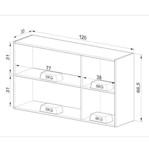 Peso Recomendado (por Tampo/prateleira/gaveta): 8 Kg