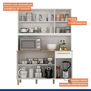 Espaço para organizar tudo o que você precisa e um design pensado para deixar o seu cômodo de chef mais bonito: essas vantagens você só encontra no armário Rubi! Unindo compartimentos internos essenciais, ela recebe bem os utensílios, panelas, louças e embalagens de alimentos, além de acomodar também aqueles eletrodomésticos indispensáveis para um dia a dia mais prático. Enquanto isso, por fora, a estrutura tradicional, que se encaixa muito bem no ambiente, carrega uma coloração sóbria que é reforçada pelos puxadores discretos, perfeitos para quem quer acrescentar charme à decoração sem deixar de lado a elegância de uma peça versátil. Daí é só comprar os móveis e acessórios que vão complementar essa parte importante da casa e pronto! Já pode curtir ótimas refeições com a família ;) Acabamento da Prateleira: Pintura Escala de Brilho da Prateleira: Fosco Acabamento da Gaveta: Pintura Escala de Brilho da Gaveta: Fosco Material do Puxador da Gaveta: MDF Acabamento da Porta: Pintura Escala de Brilho da Porta: Fosco Material do Puxador da Porta: MDF Acabamento dos Pés: Pintura Acompanha Tampo: Sim Altura dos Pés: 25 cm Ambiente Principal: Cozinha Complexidade da Montagem: Alta: deve ser montado por um montador especializado Cor: Branco Cor do Produto: Branco Escala de Brilho: Semi-Brilho Gaveta com Chave: Não Itens Inclusos: 1 Armário, Kit Ferragens e Manual de Montagem Manual de Montagem e Instalação: https://product-hub-prd.madeiramadeira.com.br/930955/documents/aef85c03-818b-4e4d-b5dd-a0b688df48d5anualdemontagemarmariorubi.pdf Material da Dobradiça/Corrediça da Porta: Metálica Material da Gaveta: MDP Material da Porta: MDP Material da Prateleira: MDP Material do Tampo: MDP Material dos Pés: Plástico Necessita Montagem: Sim O Balcão Acompanha Pia: Não Origem do Produto: Nacional Pés Reguláveis: Sim Peso: 62 kg Peso Máximo por Gaveta: 2 kg Peso Máximo por Prateleira: 5 kg Possui Pés: 06 Possui Portas: Sim Possui Prateleiras: Sim Possui recorte para Cooktop: Não Possui Rodízio: Não Recomendações de Uso, Manutenção e Limpeza: Limpar com pano macio e levemente umedecido. Não utilizar solventes a base e de inflamáveis. Não utilizar produtos abrasivos. Sapatas Niveladoras: Sim Sistema de Montagem: Parafusos. Suporta Até (kg): 72 kg Tamanho Indicado da Pia: . Tipo de Corrediça da Gaveta: Metálica Telescópica Tipo de Dobradiça da Porta: Simples Tipo de Puxador da Gaveta: Externo Tipo de Puxador da Porta: Externo