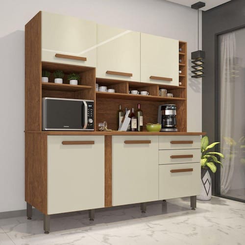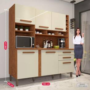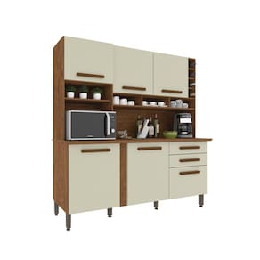 Preparar receitas especiais para a família e os amigos fica ainda melhor quando o espaço está organizado e todas as coisas estão em seus devidos lugares, né? Conte com a Cozinha Compacta Alexia para levar ainda mais praticidade à sua rotina. Espaçosa, ela oferece portas e gavetas para você acomodar potes de mantimentos, panelas, pratos, talheres, enfim, todos os itens que utiliza para cozinhar diariamente - além disso, também pode receber eletrodoméstico ou servir de apoio para picar alimentos. Ah, e como bom gosto é essencial para a sua casa, o visual sofisticado e atemporal é fácil de ser inserido na decoração e de ser combinado com outros móveis ;) Acabamento da Gaveta: Pintura Acabamento da Porta: Pintura Acabamento da Prateleira: Pintura Acabamento dos Pés: Pintura Acompanha Tampo: Sim Altura dos Pés: 17 Ambiente Principal: Quarto Complexidade da Montagem: Média: pode ser montado por mais de uma pessoa e/ou necessite de maior conhecimento para montagem Cor: Cinamomo/Off White Cor do Produto: Cinamomo/Off White Escala de Brilho: Semi-Brilho Escala de Brilho da Gaveta: Fosco Escala de Brilho da Porta: Semi-Brilho Escala de Brilho da Prateleira: Fosco Gaveta com Chave: Não Itens Inclusos: 1 Cozinha, Kit Ferragens e Manual de Montagem. Manual de Montagem e Instalação: https://cdn2.madeiramadeira.com.br/atributo/imop/1241592-7908297304302-1.pdf Material da Dobradiça/Corrediça da Porta: Metálica Material da Gaveta: MDP Material da Porta: MDP Material da Prateleira: MDP Material do Fundo: MDP Material do Puxador da Gaveta: MDF Material do Puxador da Porta: MDF Material do Tampo: MDP Material dos Pés: PVC Material Principal: MDF/MDP Necessita Montagem: Sim O Balcão Acompanha Pia: Não Origem do Produto: Nacional Pés Reguláveis: Sim Peso: 79.5 Peso Máximo por Gaveta: 6 Peso Máximo por Prateleira: 8 Possui Espelho: Não Possui Possui Pés: 06 Possui Portas: 06 Possui Prateleiras: 07 Possui recorte para Cooktop: Não Possui Rodízio: Não Quantidade de Peças: 01 Recomendações de Uso, Manutenção e Limpeza: Limpeza com pano macio e levemente umedecido. Não utilizar solventes a base e de inflamáveis. Não utilizar produtos abrasivos. Sapatas Niveladoras: Não Sistema de Montagem: Parafusos e Cavilhas. Suporta Até (kg): 80 kg Tipo de Corrediça da Gaveta: Telescópica Tipo de Dobradiça da Porta: 35 mm Tipo de Dobradiça/Corrediça da Porta: Simples Tipo de Porta: Bater Tipo de Puxador da Gaveta: Externo Tipo de Puxador da Porta: Externo