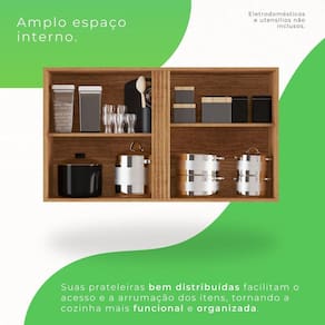 Pensando em organizar sua cozinha e poupar espaço no ambiente mais gostoso da sua casa? Com este incrível Armário Aéreo Pérola com 2 portas você terá maior aproveitamento de espaço e organização na sua cozinha. Espaçoso, ele é ideal para deixar o lugar mais bonito e atraente, além de dar aquela força na hora de arrumar as panelas, mantimentos ou o que mais você preferir deixando tudo do seu jeito. Aproveite!! Acabamento da Prateleira: Pintura UV Escala de Brilho da Prateleira: Fosco Acabamento da Porta: Pintura UV Escala de Brilho da Porta: Fosco Ambiente Principal: Cozinha codigo_ean: 7909903518571 Complexidade da Montagem: Média: pode ser montado por mais de uma pessoa e/ou necessite de maior conhecimento para montagem Cor: Cinamomo/Preto Cor do Produto: Cinamomo/Preto Escala de Brilho: Fosco Itens Inclusos: 1 Armário Aéreo, Manual de Montagem e Kit Ferragens Linha ou Coleção: Pérola Manual de Montagem e Instalação: https://product-hub-prd.madeiramadeira.com.br/884311/documents/b97b26ae-be2f-46cf-8a92-c7605547750c1706316aereo02ptsperola120.pdf Material da Dobradiça/Corrediça da Porta: Metálica Material da Porta: MDP Material da Prateleira: MDP Necessita Montagem: Sim Origem do Produto: Nacional Peso: 24,5 kg Peso Máximo por Prateleira: 5 kg Possui Espelho: Não Possui Possui Pés: Suspenso Possui Portas: Sim Possui Prateleiras: Sim Produto Montado: Sim Recomendações de Uso, Manutenção e Limpeza: Para limpar corretamente seus armários de madeira, use sempre um pano liso e levemente umedecido com água. Sapatas Niveladoras: Não Sistema de Montagem: Parafusos, Cavilhas, Dobradiças e Puxadores. Suporta Até (kg): 20 kg Tipo de Dobradiça/Corrediça da Porta: Simples Tipo de Puxador da Porta: Externo