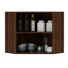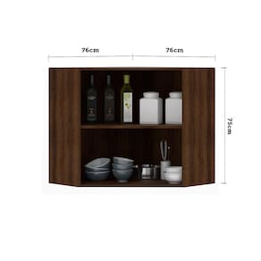 Armário Para Cozinha Canto Diagonal 2 Portas Safira Luciane Móveis Nogueira Dourado Com Branco Pet