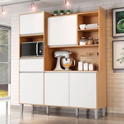 Começou a montar sua cozinha? Então apresentamos para você este belo kit para cozinha da linha Isabel. Com cinco portas, sendo uma porta basculante equipado com pistão a gás. Conta também com uma gaveta com corrediças metálicas, garantindo um deslizamento eficiente e resistente para o uso diário. Composto por cinco nichos possui um para micro-ondas ou forno elétrico, um nicho superior para colocar objetos decorativos ou utensílios menores, dois nichos maiores e um nicho grande para acomodar seus eletros ou seus acessórios. Os puxadores e pés em PVC oferecem mais resistência e boa durabilidade. Fabricado pela AJL, é desenvolvido em 100% MDP, sendo a escolha perfeita para quem busca praticidade, design moderno e acabamento de qualidade. Aproveite e garanta já o seu!
