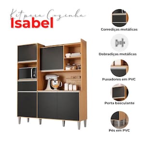 Armário para Cozinha Kit Isabel Amêndoa Preto - AJL