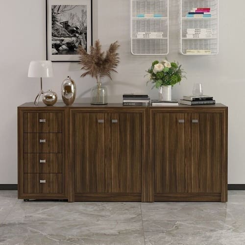 O Gaveteiro com 4 Gavetas ME 4133 possui 4 rodízios para facilitar o movimento. Ideal para uso em escritório, home office, sala de estar e dormitório. Um produto muito versátil. Possui a altura de mesa podendo aumentar a área da mesa de trabalho Altura do Conjunto: 74.5 cm Ambiente: Escritório Ambiente Principal: Escritório codigo_ean: 7900288126511 Cor: Nogal Cor do Produto: Nogal Informação Complementar: 2x Balcão para Escritório 60cm com 2 Portas e 1 Prateleira ME4103 Nogal Largura: 60 cm Altura: 74,5 cm Peso: 14,55 kg Profundidade: 31,5 cm Necessita Montagem: Sim