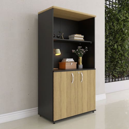 Organize seu espaço com praticidade e estilo! Este armário possui tampo robusto de 2,5cm com acabamento em fita ABS de 1mm, garantindo durabilidade e sofisticação. Com gabinete em MDP de 1,5cm, proporcionando versatilidade para armazenar documentos, livros e outros itens essenciais.