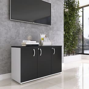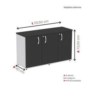 Seu design clean combina facilmente com diferentes mobílias, mantendo a harmonia da decoração. Ideal para o dia a dia de trabalho, é perfeito para deixar seu ambiente organizado, funcional e elegante. Acabamento da Porta: BP Acabamento da Prateleira: BP Ambiente Principal: Escritório Armário Suspenso: Não codigo_ean: 7900288167606 Complexidade da Montagem: Média: pode ser montado por mais de uma pessoa e/ou necessite de maior conhecimento para montagem Cor: Cinza/Preto Cor do Produto: Cinza/Preto Cor Interna: Cinza Escala de Brilho: Semi-Fosco Escala de Brilho da Porta: Semi-Fosco Escala de Brilho da Prateleira: Semi-Fosco Formato do Armário: Retangular Itens Inclusos: 1 Armário, Kit Ferragens e Manual de Montagem Linha ou Coleção: Credenza Manual de Montagem e Instalação: https://product-hub-prd.madeiramadeira.com.br/816102551/documents/715a66bd-eb83-4592-a5b2-62a5ac40fd6f2723979387017411828145805.pdf Marca: Pandin Móveis Material da Porta: MDP Material da Prateleira: MDP Material dos Pés: Polipropileno Material Principal: MDP Necessita Montagem: Sim Orientação do Armário: Horizontal Origem do Produto: Nacional Peso: 38,882 kg Peso Máximo por Prateleira: 15 kg Possui Espelho: Não Possui Mesa Retrátil: Não Possui Pés: 06 Possui Portas: 03 Possui Prateleiras: 03 Quantidade de Armários: 1 Recomendações de Uso, Manutenção e Limpeza: Limpeza feita com um pano levemente umedecido e um pano seco. Sapatas Niveladoras: Sim Sistema de Montagem: Parafuso Suporta Até (kg): 30 kg Tamanho do Armário: Baixo (Até 90cm) Tipo de Armário: Totalmente Fechado Tipo de Dobradiça/Corrediça da Porta: Alumínio Tipo de Puxador da Porta: Externo Marca: Não Informado